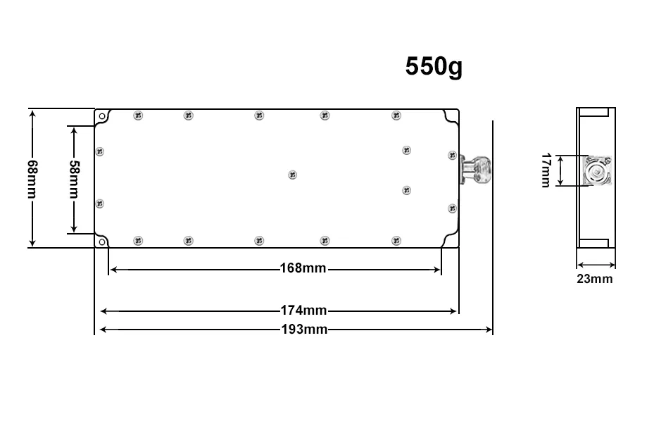 Внешний вид этого модуля усилителя цифрового сигнала источника GaN мощностью 100 Вт с защитой круга изготовлен из алюминия, а функция защиты кольца позволяет защитить модуль и окружающие цепи в аномальных условиях, таких как перегрузка по току, перенапряжение, перегрев и т. д., обеспечивая стабильную работу системы и продлевая срок ее службы. В этом модуле используются обычные радиочастотные разъемы, такие как SMA и N-тип, что удобно для подключения к другим радиочастотным устройствам.